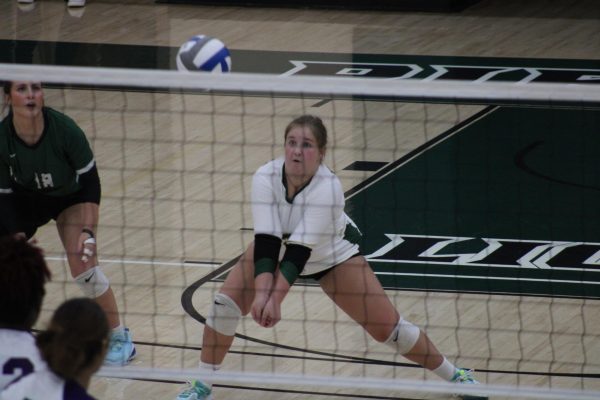 Kat Tatum, first year volleyball coach at Piedmont University, has been making her mark on the team and Coelho since her arrival. “She’s very invested on and off the court, she cares about us as students and people, not just as volleyball players.” (Angelica Lux)As the team’s best defense specialist, Coelho has started all games this season. (Angelica Lux)“I know I can score points hitting it on the second ball, or sometimes on the first ball,” Coelho says on her ability keep the ball in play and score points, already having 44.0 this season. (Angelica Lux)Zoe Coelho (21), senior at Piedmont University, wraps up her long journey with volleyball. Coelho fell in love with the sport at the age of six, and she’s having her best year yet. (Angelica Lux)Senior Zoe Coelho has been an outstanding player this season, playing a major role in the Lady Lions’ success throughout the year. As a lifelong volleyball player, her achievements in the sport have continued to impact her on and off the court. (Angelica Lux)With 22 kills, 199 total attacks and 69 assists so far, Coelho has already broken multiple career stats. (Angelica Lux)As a lockdown defensive player, Coelho’s ability to keep the ball in play has been outstanding in her final season, with 548 digs so far, a career high. She’s expected to continue climbing the ladder even higher. (Angelica Lux)“Celebrating the points…teams that high five more end up winning more games,” said Coelho. “I think that’s part of having better energy throughout the game.” (Angelica Lux)Coelho knows what it takes to keep her team successful. “… a lot of the times we’re successful, it’s because we just keep the rally going and let the other team mess up and then kill if we can.” (Angelica Lux)“I’m just playing for fun, I’m playing because when I was young, I fell in love with volleyball and I don’t want to disappoint the younger version of myself,” Coelho said about her thoughts for her senior season. (Angelica Lux)